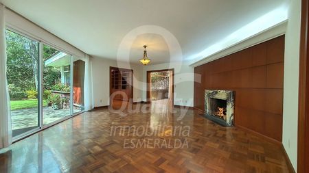 Al área de descanso a un costado de la casa, le antecede un pequeño oratorio. La recámara principal, generosa en espacios, con pisos de duela magníficamente conservados, vestidor y closet de madera fina con gran almacenamiento, baño con lavabos él y ella y canceles de cristal.