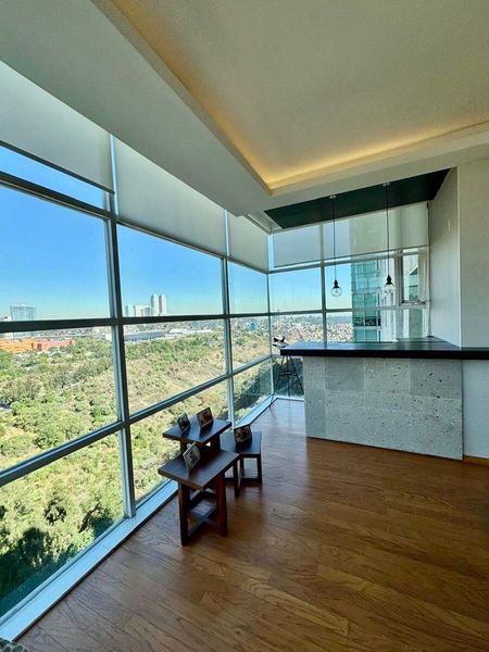 Extraordinario departamento con una vista inigualable en el desarrollo "Mirage" en La Loma Santa fe, el departamento esta en impecable estado con gran iluminación y la mejor vista de todo el edificio, la estancia es de gran tamaño, una temperatura ideal, pisos de madera.