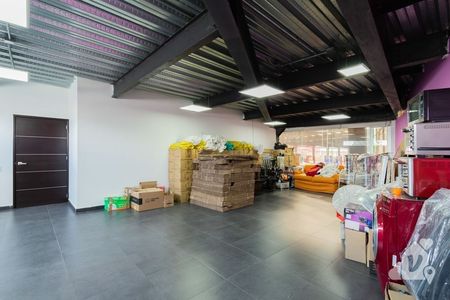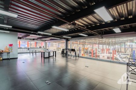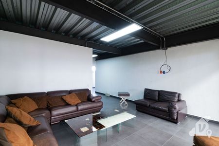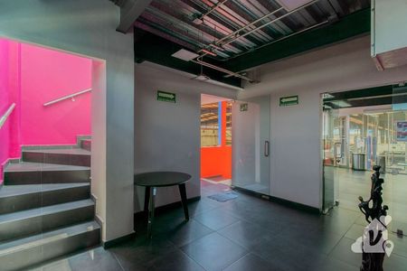 A un costado se encuentra el área de oficinas privadas, con vistas a toda la nave. Baños para hombres y mujeres.